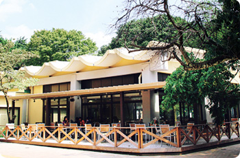 改装された第一むさしのホール。ホール周辺も含めて緑陰が広がる