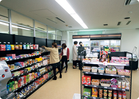2005年の府立3大学統合により、羽曳野キャンパスは業者食堂の撤退を受けて、生協は食堂だけの営業で スタートしました。書籍と売店は別々の業者が運営していましたが、2008年6月より売店業者の撤退に伴い、生協が購買店として新装オープンしました。そして、今年3月、食堂席数の増加を目的に、店舗を地下2階から1階の保健室跡に引っ越ししました。書籍はなく、購買だけの店です。