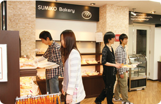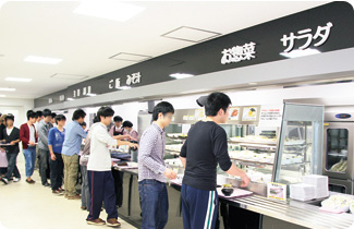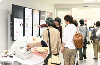 耐震工事が完了した大学会館には食堂2店舗(1階大食堂、2階カフェテリア)、購買2店舗(複合店CamPla、コンビニ店すみっこ)、焼きたてパン(すみっこ店内に併設)、カフェの各店舗が営業しています。また、学内にはコンビニ店の他に3店舗(教養かどっこ店、Nitechマートはじっこ店、1号館ミニショップ)とラウンジカフェ(Nitechマート)の各店を展開する形になりました。各店舗の役割、特色を出すことでより組合員が利用しやすい店舗配置が実現しました。