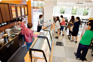 今回の改装では、厨房の位置を大幅に変えて、今まで外に並んでいた長い行列を建物の中に収めることができました。また、これまでの施設改装のノウハウを活かし、カフェテリアの出食カウンターの反対側に本格的なカフェコーナーを作ったことで、アイドルタイムにも食堂を利用いただけるようになりました。カフェテリア食堂自体の利用も改装前と比べ約1.3倍になり、多くの学生に喜んでいただいています。