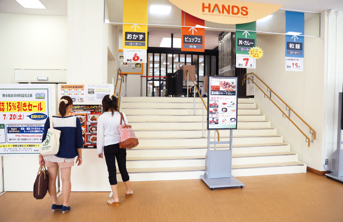 2012年3月、第一福利施設の耐震工事が決まり、販売系店舗eMと食堂HANDSの新店舗計画をスタートさせました。 施設改修では次の3点に重点を置きました。