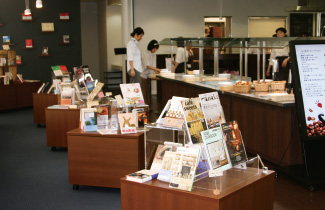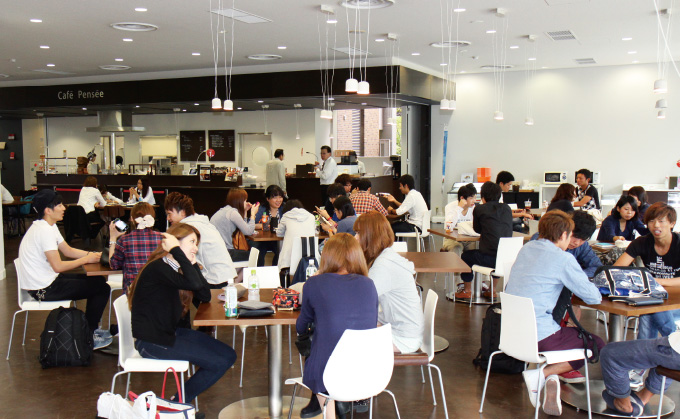 キャンパスの中心に位置するCaféパンセは今回の改装で「時間ごとに店の顔が変わるお店」になりました。朝は勉強する学生、ブックコーナーで読書をする学生、近隣の方がモーニングを楽しむ時間。昼は棚が移動して、ランチボックスや焼き立てパンなど昼食利用に向けた店舗に。ピーク後は友人同士の語らいや、デザートやコーヒーを楽しむ近所の方々の利用も見られます。