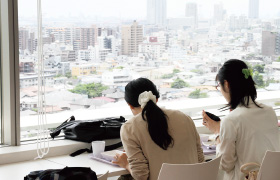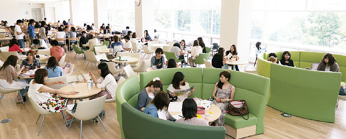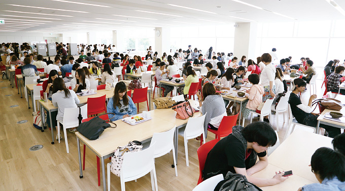 空き時間には自習や交流の場に、昼時には食事の場になります