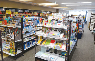 生協は研究棟の1階に、ワンフロアの購買書籍店として開店、1日約1800名のご利用をいただいています。