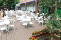 ウッド調デッキにテラス席120席が用意されています