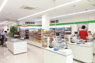 2階にある購買も改装しました。天井照明にはすべてLEDを採用し、省エネ、ローメンテナンス性をねらっています
