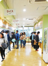 利用者の特徴として院生、教職員比率が約70%となり、昼夜ともにシェア率(エリア人口÷生協利用者)が約70%となります。オープン当初は目標客数との関係で苦戦していましたが、10月以降利用者が戻り始め、目標数値を達成するペースとなっています。特に食堂の中華レンジによるオーダーコーナーは歴史的な名物メニューとなっています。