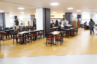 2014年8月7日、大学会館2階にリニューアルオープンしました。1年間の閉店を経て、夏休み期間に入ってからのリニューアルオープンとなりましたが、初日から予想以上のお客様にご利用いただきました。出食方法は従来のレストラン形式ではなく、レジで注文をしてから、お客様に取りに来ていただく形式になりました。2階という難しい立地でありながら、改装前よりも客数を伸ばしています。