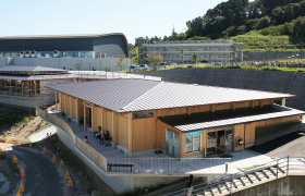 両施設は傾斜地に木造建物として建設したため、大きな下部構造体を造らざるを得なかったので、設計・建設に時間がかかり、当初の開業予定より約1年遅れて竣工しました。