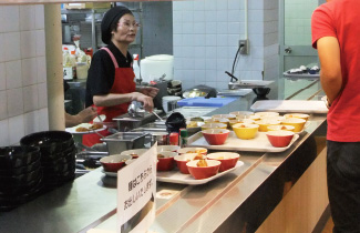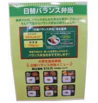 メニューはそれまでの定食中心からカフェテリア方式へ変更し、数も増やしました。営業時間は夕食を提供できるように、以前の11時〜13時30分を11時〜19時へ延長し、弁当や飲料コーナーも併設しました。ミールカードの提案も行い、現在利用者は80名以上です。