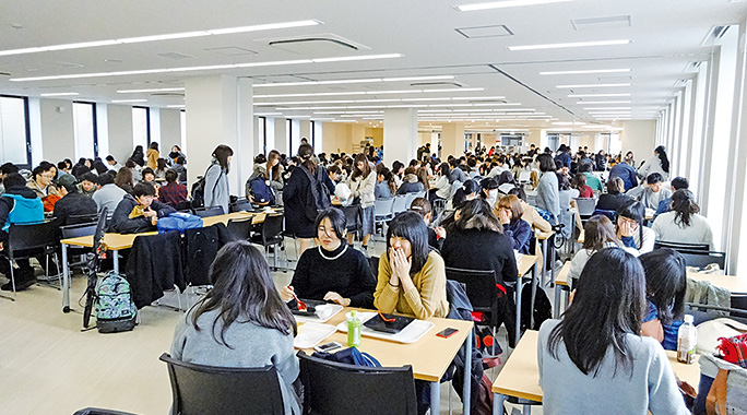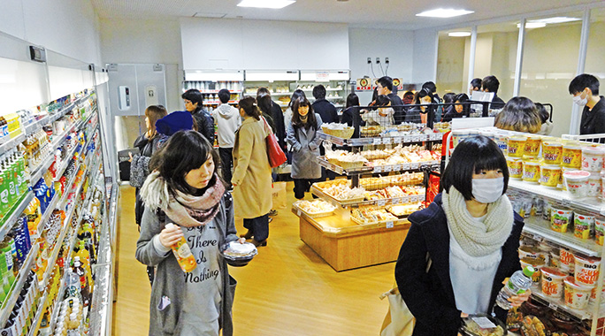 大学の将来計画により、キャンパス拡大に伴ってその中心が移動してきたことや、キャンパス人口の増加に対応するため、新棟「響友館」が建設されました。キャンパスの中心に位置する建物の1階にSHOPが移転し、2階には三つ目となる新食堂がオープンしました。