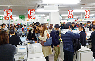 ショップも、混雑緩和を目指してリニューアルしました。改装前は、入り口のすぐ右側にパン弁当飲料コーナーがあり、お昼のピーク時は大変混雑しました。さらに行列がショップ入り口にまで達し、出入りが全くできなくなることもありました。改装後は、パン弁当飲料コーナーを一番奥にしたことで、入り口の混雑がなくなりました。また、一番混雑するパン弁当飲料周りの通路幅を確保し、買い物がしやすくなりました。あわせて焼きたてパンコーナーを併設し、利用者に喜ばれています。