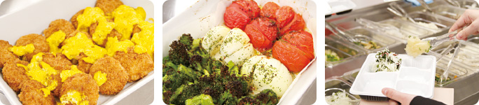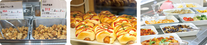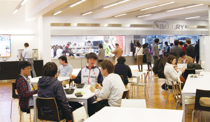 理工学部の学生や教員は研究に忙しく、「研究室で作業をしながら食事をしたい」という意見が多かったため、これらの店舗の商品はすべてテイクアウト可能にしました。452席あるラウンジ席の利用状況を気にすることなく食堂運営ができる点が利点です。不足しがちな野菜やボリュームのある丼など、学生のニーズに合ったメニューも好評です。