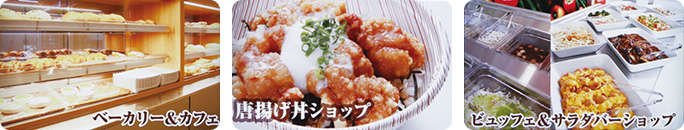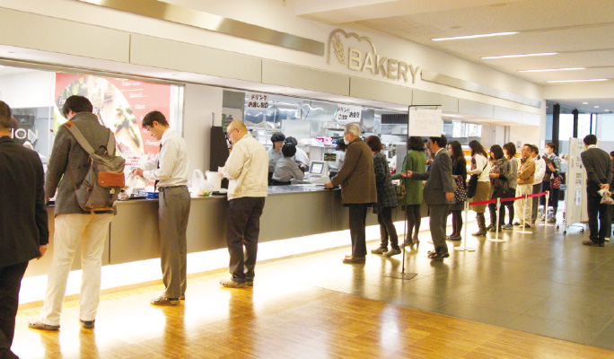 出店にあたっては理工学術院長から「理工キャンパスに合った、しかも『フードコート』のように選べる食堂を提案してほしい」との要請がありました。生協はそれを受け、協議の結果、ベーカリーショップ、唐揚げ丼、ビュッフェという3業態をフードコートスタイルで配置する提案をし、大学より正式に受託されました。