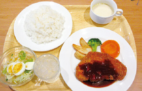 こだわりは、①使用食材(肉・魚・野菜)は新鮮なもので、冷凍食品は可能な限り使用しない、②国産や地場の食材を極力使用する、③洋風メニューが多いが、組合員の要望も多い和食・中華等も織り交ぜる、④揚げ・焼き・炒め・煮のバランスを考慮する、の4点です。