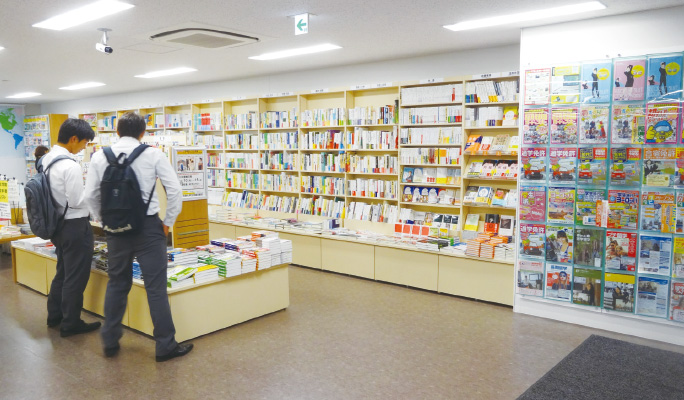 学内に強力なセブン-イレブンがあることを念頭に「カウンター機能(大学主催講座・短期留学・専門学校・情報機器・共済等)を最重点とし、日々の利用があるコンビニ需要にもしっかり応える。勉学研究のベースとなる書籍分野については、店舗入り口正面に配置することで「書籍」の存在感を出し、品揃えと陳列で提案力を強化する」をコンセプトとしました。また、場所の有効活用のために季節ごとのコーナー展開変更のための仕掛けや、法政大学がスーパーグローバル大学創生支援に選択されたことで英語表記にも留意しました。