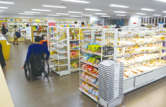 2016年9月16日、新校舎「富士見ゲート」内で新たに市ヶ谷購買書籍部がオープンしました。市ヶ谷キャンパスの生協は55・58年館内に5店舗と3食堂を構えていましたが、老朽化に伴う解体工事の進捗により、7月いっぱいで全ての営業を終了し、販売系店舗群は富士見ゲート地下1Fで念願のワンフロア店舗となりました。従来の店舗面積合計の3分の2ほどになりましたが、ワンフロアで使いやすくなったと大変好評で、想定よりロケーションも良かったこともあり、利用者数もほぼ計画通り(従来より200人増の約1,800人)となっています。