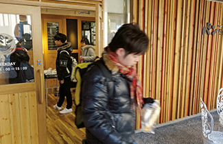 オープン後は店頭利用が予想以上にあり、新規に取扱いを開始した購買店舗でも売れ行きが好調のため、早くも製造量が限界に近づいてきたのが嬉しい悩みです。また、お店の外壁は、名古屋大学の「都市の木質化プロジェクト」の作業チームによって、間伐材を利用した温もりのある素敵な壁面に生まれ変わりました。利用者だけでなく大学関係者からもご好評をいただいております。
