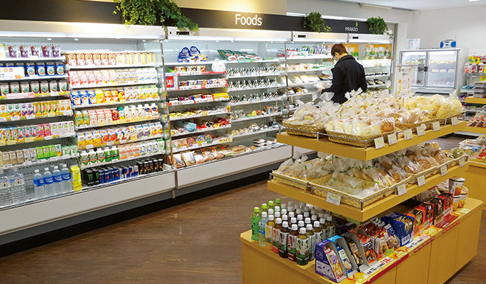 「プランゾ」は、1年生が集まる全学教育棟にあるコンビニショップです。狭いですが、1日平均1,100人の利用があります。前回の改装から10年経過し、冷蔵ショーケースや壁や床が老朽化してきたため、改装に踏み切りました。レイアウトを全面的に変更し、カウンターや什器の配置を工夫して売場を広くしました。パンだが屋が近いこともあり、内製パンを前面に押し出し、お昼の食べ物をアピールするお店づくりを心掛けました。改装直後は配置替えと動線変更による混雑もあり客数は伸び悩みましたが、半月後から徐々に増え順調に推移しています。