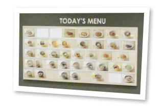 ダークブラウンに白いサインが入ったシックなカウンター