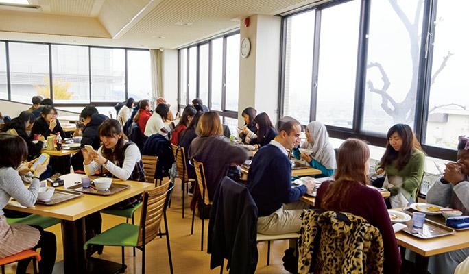神戸大学では留学生の受け入れを積極的に行っています(約1,200人)。以前は東アジアからの留学生がほとんどを占めていましたが、近年はイスラム圏からの留学生が増えています。これまで生協は限られた食堂とメニューで対応するに留まっていましたが、2016年に教員の方からグルテンフリーの相談をいただき、LANSBOX食堂2階の丼・カレーコーナーを、留学生の食事環境に合わせて喫茶コーナーへと改装しました。