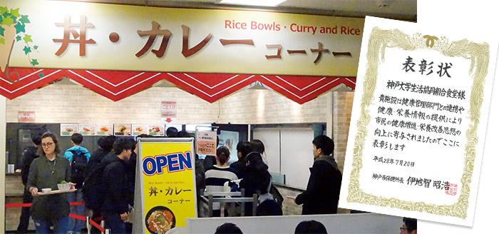 ※神戸大学生協は、一昨年、神戸市から「平成28年度神戸市優良特定給食施設推進事業表彰」を頂きました