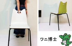 Crocochair学生の利用が多いファミール食堂ホールの椅子の一部は、工学研究科の大学院生がデザインしました。デザインを考えるにあたっては、大阪大学の公式マスコットキャラクター「ワニ博士」をモチーフに、座って楽しくなるようなデザインを目指したそうです。コンセプトは、“ワニの鼻の孔に指を突っ込んで持ち運びがしやすく、荷物をかけやすい椅子"で、Crocochairと名付けられました。学生の皆さんの食事時間を、ほんの少しでも楽しくしたいとの願いが込められています。