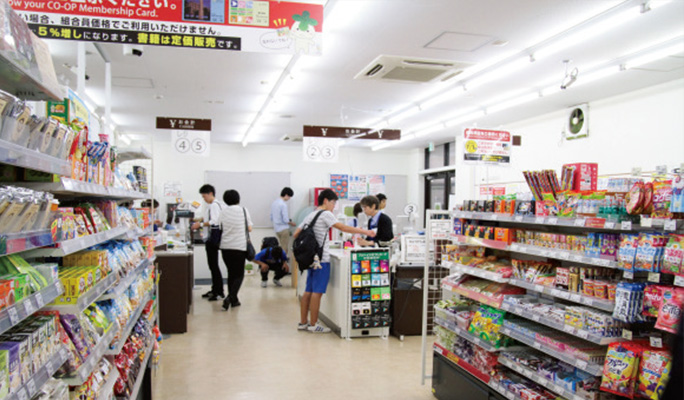 大阪大学最大の学部である工学部の新しい生協施設(センテラス)は、1階に食堂が2店舗、テイクアウト丼カウンターが1つ、コンビニが1店舗。2階には書籍、旅行、公費、お部屋紹介、生協加入・共済窓口、PC、PCソフト、サプライ、外販受付等が一つになったワンストップカウンターを有する店舗を展開し、より利用しやすい空間を作りました。