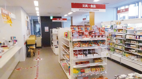 ショップは、コンビニ飲食品スペースの倍増・充実が利用増につながりました。また体育館を利用する学生も、練習の合間に小腹をすかせて、来店利用します。書籍コーナーは、学生向けに就職本を、先生向けに人文社会系の専門書新刊を充実しました。