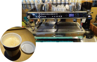 カウンターの中には本格的なエスプレッソマシンや焙煎機