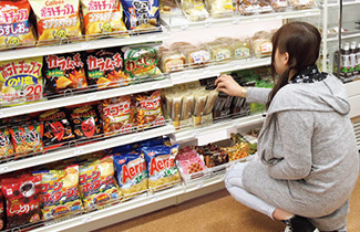 カップ麺の販売をやめ、おにぎり、パン、飲料、お菓子などを充実させた品揃え
