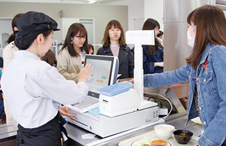 日赤豊田看護大は1学年約130名の単科大学です。学生は学外実習が多く、4学年全員が揃うことが少ないので、営業形態には検討を重ねました。また、以前の食券自販機からカフェテリア後払い方式に変更し、学生が栄養バランスを考えてしっかり食べられるようにメニューにも工夫を凝らしました。