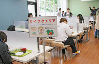 朝霞キャンパスの学部構成は2005年に新設されたライフデザイン学部の1学部3学科です。2009年の入札で生協が運営を担当することになり、翌10年に東洋大学生協2店舗目となる食堂をオ-プンしました。食堂と購買店舗の一体運営となります。加入率も95%を超え、昼食提供から教材まで担える店舗となりました。