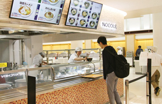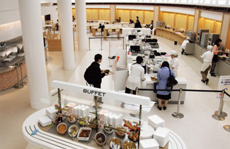 安田講堂前広場の地下にあり、かつて秘密基地と呼ばれた中央食堂。18年3月にオープンした新中央食堂は、1階に8つ、2階に1つの9コーナーでメニューを提供します。施設内にはエレベーターやインターフォンも完備され、バリアフリー化されました。テーブル配置も多様になり、明るく快適で、食事だけでなく学生教職員の新たな交流の場にもなりました。きめ細かくお客様の対応ができるよう、ホール内に案内係を配置したことも喜ばれています。 安心安全の食材・メニュー、学食パス、食生活相談会など長年培ってきた「食育」の姿勢を堅持し、毎日利用する組合員の期待に応えていくべく、東大生協一丸となって頑張ります。