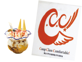 名物の金魚鉢パフェ、岡山大学学生委員会C.C.C! のロゴ
