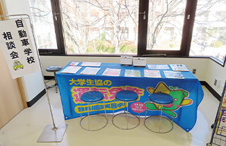 以前は、書籍単独店と旅行の専門カウンターのフロアでした。改装後は、「学生の皆さんの入学から卒業までをサポートする場所」「新しいものに出会える場所」「リアルコミュニケーションができる場所」の三つのコンセプトをもとに、書籍と旅行に加え、学内公務員講座などの学びのサポート、新入学・PCサポート、住まい紹介などを行う店舗になりました。