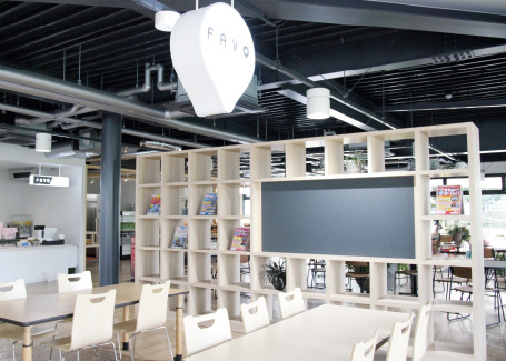 令和元年10月1日にオープンした福利厚生施設FAVOは、英語の“favorite”から「誰にとってもお気に入りになるように」との想いを込めて名付けました。 「FAVO」はこの施設の「ダイバーシティキャンパスを象徴する建物」という主旨にもつながります。すべての学内構成員や地域の方一人一人にとってFAVOがキャンパス内の第2の居場所となるよう、設計に反映していきました。