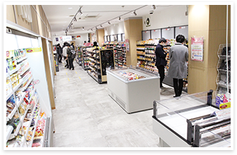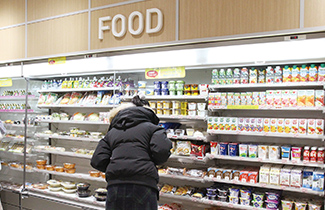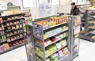 19年9月に生協の購買工学部店をリニューアルオープンしました。吹田キャンパスの旗艦ショップとして品揃えがわかりやすいレイアウト・什器の選定を進めました。縦長の店舗のため非常にレイアウトが難しい店舗ですが、入口からパン米飯類・飲料・お菓子・レジ周辺に文具等を配置しました。