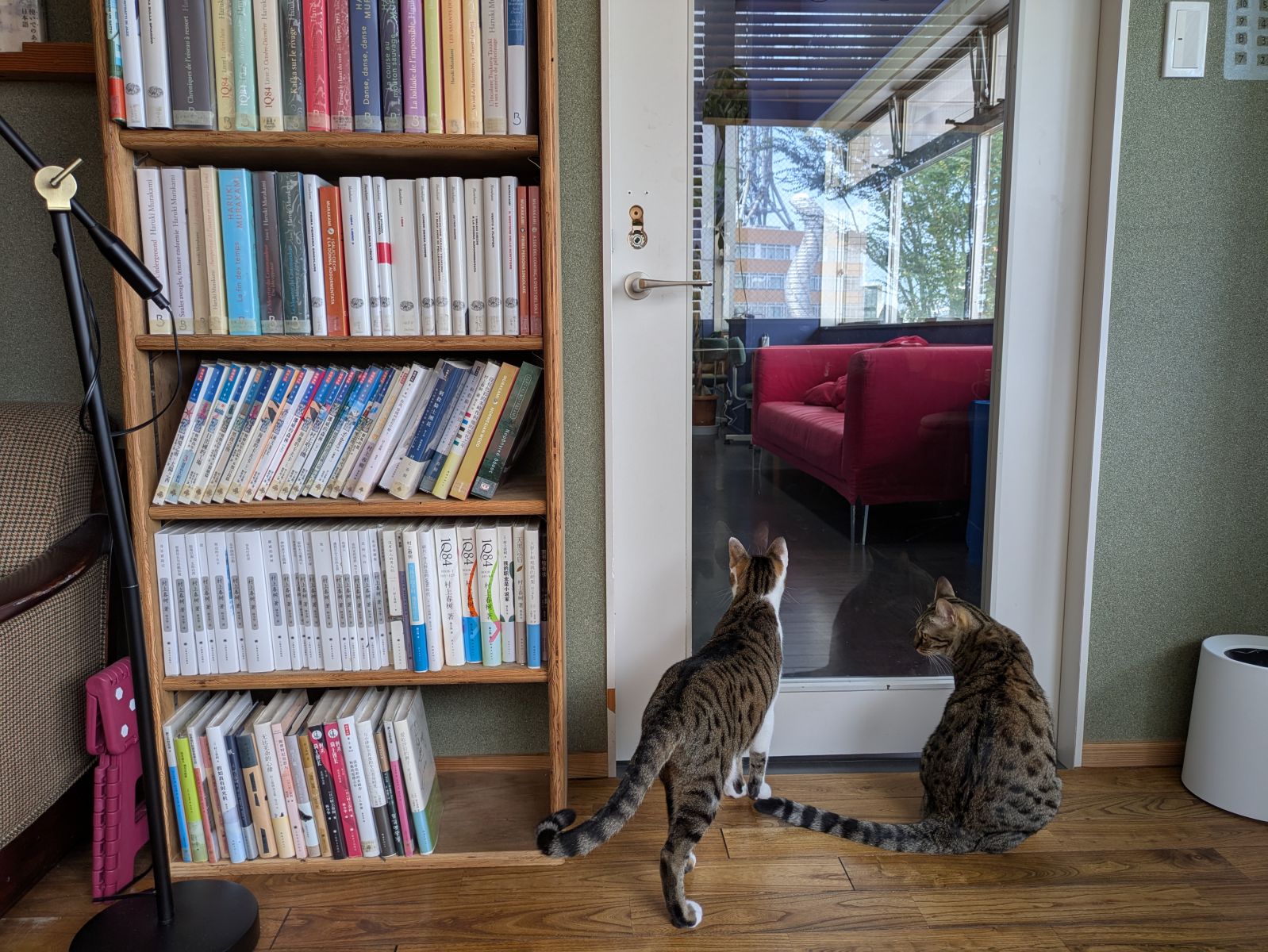 この宿を語るにあたって、看板猫の存在は欠かせない。オスのハマチとメスのふくらぎ。出世前のブリにあやかって名づけられた。とてもかわいい。ずいぶん癒された。猫はあざといとよく言われるけれど、むしろあざとさのプロフェッショナルとして、こちらの浅はかなあざとさを見透かされているようで恐ろしい。思えば小説にも猫が出てきた。その猫はのちに「いわし」と名づけられる。そしてぼくは想像するのだ。羊と猫が一匹のいるかを挟んで並び、群れをなして透き通った川の中を流れるように走り去る姿を。