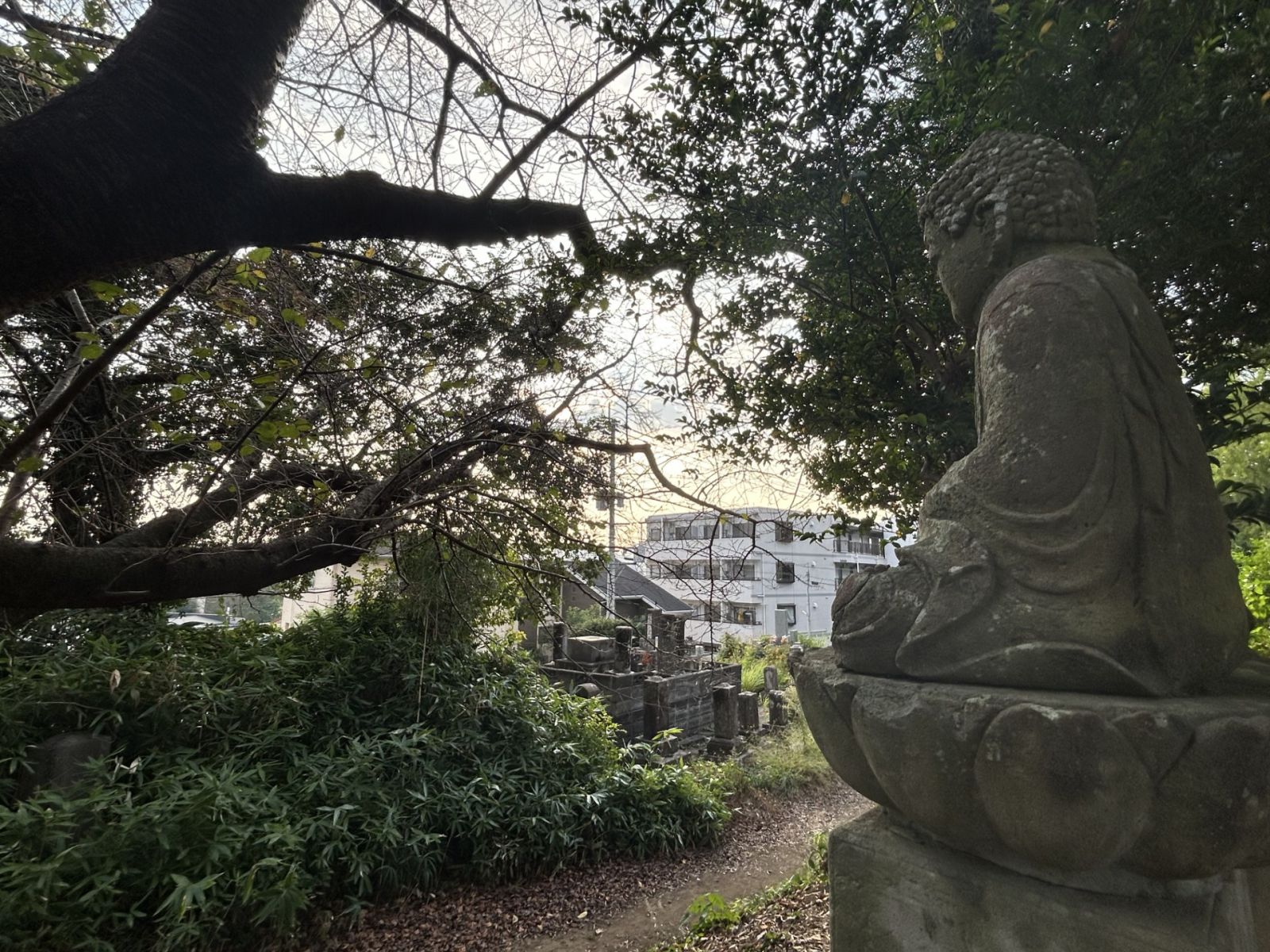 『石仏』の一節にこう語られた石仏。穏やかな表情を浮かべて、街を見ているこの石仏は、長い月日の中で一体、どんなことを考えていたのだろうか。近代に向かっていった熊本県、石仏のように変化から取り残されたものもあれば、あっという間に元も分からないくらいに変わっていったものもあったはずだ。苔が生えて尚、にこやかに街を見守っている石仏を見て、八雲も様々なことに思いを馳せたのだろう。