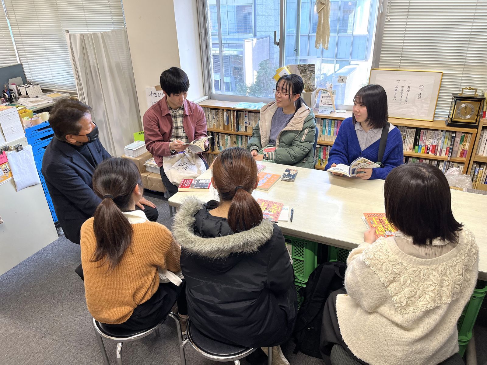 さらに本の雑誌社は挑戦を続けている。新しい読者を増やすことを狙う『本の雑誌』。本に見る異世界転生を特集するなど、新たな読者層を狙ったアプローチも絶やさない。見学中も、いずみ委員の読む本や活動についても興味津々。「どんな本を読むの?」「どんな記事を書いているの?」といずみ委員にも積極的に話しかける。「本の終活」「オモロイ純文学運動」とユニークな企画に取り組まれている『本の雑誌』。いずみ委員からも『本の雑誌』が出来るまでの過程を活発的に質問する。書評家やインタビューワー、読者とのやりとりも活発な、本と人がつながっていく玄関口みたいな出版社。たくさんの人との関わりを通して、『本の雑誌』が作られていったことに気づかされた。忙しい毎日をどこか生き生きと語るような、本の雑誌社の方々を見ていると、本と人をつなぐことは簡単ではないからこそのやりがいがあると考えさせられる。