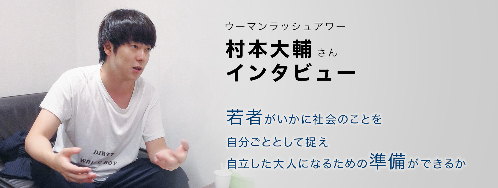 よしもとクリエイティブ・エージェンシー所属、お笑い芸人のウーマンラッシュアワー 村本大輔さんにインタビューしました。村本さんは全国各地で“独演会"として単独ライブを実施しており、「ケーキに薬をまぜて耳から喰わせる」と表現されるように、お笑いを通して社会問題を発信しています。今回は、その経緯や大学生への期待など、たくさんの想いをお話しいただきました。