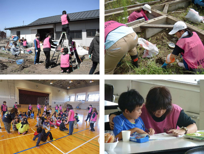 東日本大震災後に被災地でボランティア活動をする学生たち(2011~13年当時)