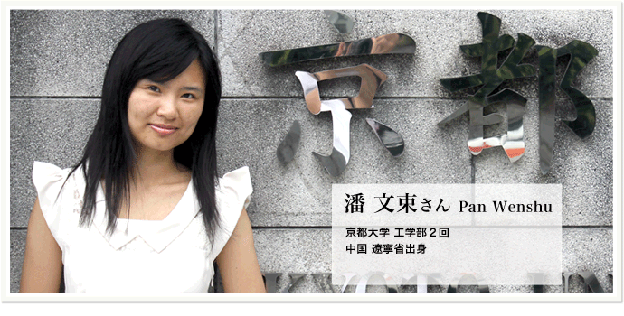 私は、京都大学工学部地球工学科2回の潘文束です。勉強だけでなく、サークル活動にも取り組んでいます。