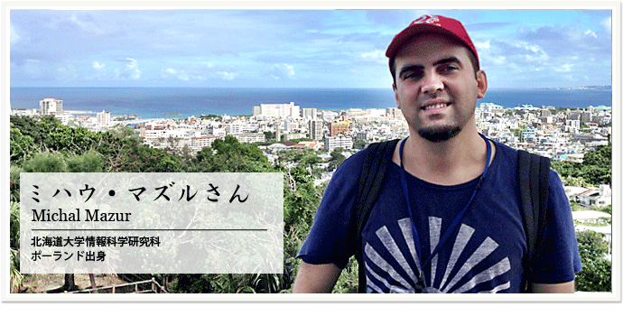 ポーランド人。北海道大学在学中。博士課程2年生で工学部自然言語処理の専攻です。趣味は温泉めぐりとラーメン食べあるきです。暇な時は、サイクリングや文化交流をよくやってます。