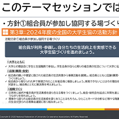 昨年開催しました全国大学生協連 第66回通常総会(UNIV.CO-OP総会特集号435)はこちらからご覧頂けます。